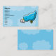 Un carte de visite personnalisable avec l'illustration numérique d'un mignon petit oiseau bleuté avec un bec jaune et des pieds tenant une enveloppe scellée d'un coeur dans son bec. Le arrière - plan est habillé de nuages pastel.