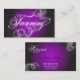 Pour aligner parfaitement votre texte, pressez la "PERSONNALISER IL" sous l'image, cliquent sur dessus l'image nouvellement chargée du carte de visite pour aller concevoir la vue. Utilisez les zones de texte sur votre droite d'accentuer le texte que vous voulez pour éditer, puis pour employer les flèches pour le déplacer ou pour cliquer sur dessus le lettrage sur l'image de votre conception et pour cliquer sur et traîner votre souris pour la déplacer. Si vous avez besoin de l'aide, entrez en contact avec svp pamsdesigns@live.ca. Conceptions de ©2012 Pam. Ces pourpre élégant, professionnel, et élégant, lettrage fumeux rougeoyant noir et blanc de manuscrit de monogramme avec des flourishes floraux tourbillonnés et étincelle au-dessus d'un carte de visite de bronzage de projecteur fournit un chic, professionnel recherchent vos affaires de salon de bronzage. Ce carte de visite élégant de monogramme est peut être personnalisé pour répondre à vos besoins d'affaires. Si vous voudriez voir votre raison sociale écrite avec cette police de fantaisie de manuscrit, svp contactez-nous chez pamsdesigns@live.ca.