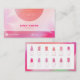 Un carte de visite élégant et élégant conçu uniquement pour les professionnels de l'ongle 💅 Doté d'une disposition intelligente double face avec un magnifique magenta et un dégradé rose chaud, et un graphique visuel de forme de clou sur le dos — cette carte est à la fois belle et utile. Entièrement modifiable : Ajoutez votre logo, votre nom, vos coordonnées et commencez à éblouir vos clients ✨ Parfait pour les salons d'ongles, les techniciens et les entrepreneurs de beauté qui veulent se démarquer avec classe et créativité!