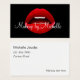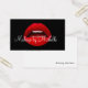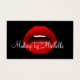 Beauty Maquillage Artiste carte de visite dans un design à deux côtés branché avec votre nom et votre profession présenté sur le devant avec de grandes lèvres rouge rouge en rouge rouge à lèvres en arrière - plan.