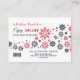 Offrez à vos clients un rabais de vacances avec cette carte promotionnelle de flocon de neige. (Peut être utilisé avec ou sans code barre). Peut être utilisé comme carte postale ou insert.<a href='https://www.freepik.com/free-vector/illustration-of-barcode_3232987.htm'>Conçu par Rawpixel.com</a>. <a href='https://www.freepik.com/free-vector/stylish-snowflakes-background-for-christmas-holiday-season_1384882.htm'>Conçu par Starline</a>). <br/>() La carte est facile à customiser avec votre libellé, police, couleur de police, options de forme de papier et le choix de six types de papier.<br/>() Pas exactement ce que vous cherchez? Tous nos produits peuvent être conçus sur mesure pour répondre à vos besoins sans frais supplémentaires.<br/>() Il suffit de nous contacter à heartfelthelper@gmail.com .<br/>() Coordonner les produits disponibles : Également disponible en taille de carte postale. Vous voulez autre chose ? Demande-nous !