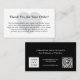 Simple moderne noir et blanc d'affaires merci pour votre commande insérer carte avec votre message de remerciement sur le devant de la carte avec le logo de votre entreprise, informations d'affaires, et le code QR du site Web sur le dos de la carte. Conseil : Vous pouvez le customiser plus loin pour changer les couleurs noir et blanc en couleurs de votre marque.