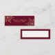 Élégant flocon doré et carte de place bordeaux avec le nom de la mariée et la date du mariage d'un côté et la boîte blanche de l'autre pour écrire facilement le nom du client.