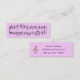 Changez l'arrière - plan de lavande en n'importe quelle couleur que vous aimez ! Perfectionnez pour le musicien ou le mélomane, cette carte maigre de profil comporte quelques mesures de musique animée sur l'avant. Sur l'inverse, une clef triple brillante et un modèle pour votre information de nom et de contact, ou toute autre chose que vous voudriez imprimer. Doubles bien comme marque-page ! Pour changer la couleur d'arrière - plan, juste le clic "personnaliser", alors "éditent", "arrière - plan".