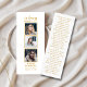 Dimensions cartes de visite : 3,0 po x 1,0 po. Personnalisez ce Signet de prière funéraire Sympathy Gold Script moderne. Design présente un design blanc moderne et un collage photo unique de 3. Facile à customiser photos et texte.