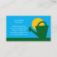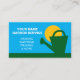 Modèle de carte d'affaires Gardener lawn care. Design agréable avec arrosoir, herbe verte, ciel bleu et soleil jaune. Parfait pour les jardiniers ou paysagistes indépendants qui s'occupent de jardins privés, de jardins et plus encore.