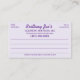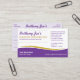 Augmentez la publicité avec ces cartes de visite professionnels (modèles) à double face pour les petites entreprises. Ces cartes sont conçues avec du texte pourpre et une couleur parties scintillant or (fausse) sur le côté avant avec du texte pourpre sur le dos. Customisez les cartes de visite en ajoutant ou en supprimant des éléments qui conviennent à la marque de votre entreprise.