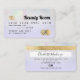 Une élégante beauté moderne et stylisée Coiffeur et maquillage artiste de style carte de crédit carte de visite avec une typographie de police script moderne sur un chic nacre nacre irisé holographique ombre sur pastel violet lavande et or métal glam arrière - plan tendance. tout le texte est personnalisable, ajoutez vos médias sociaux. Avec fausse bande d'or. Ajoutez votre logo, votre monogramme et votre code QR.