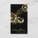 Conceptions de ©2011 Pam. Ces noir élégant et audacieux et carte de visite feuillu floral d'agent immobilier de monogramme de remous d'or fournit une stupéfaction, le professionnel recherchent votre spa et salon. Ce carte de visite d'agent immobilier est entièrement personnalisable et peut être personnalisé pour répondre à vos besoins d'affaires. Ce vrai carte de visite de monogramme d'agent immobilier peut également être customisé pour répondre à d'autres besoins d'affaires tels que des techniciens d'ongle, des couturiers, des magasins de détail, des agents immobiliers, des brocanteurs, des détaillants, des maquilleurs, des dessinateurs d'intérieurs et des décorateurs, des coiffeurs, des couturiers, des bijoutiers, et d'autres entreprises orientées par style.