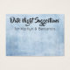 Voici un accessoire amusant à ramasser pour votre fiançailles ou douche conjointe : cartes de suggestion de jour de nuit sur lesquelles les invités peuvent écrire des notes personnelles à la mariée et au marié. Sur le devant, vous lisez "date night suggestions" dans une police de caractères élégante, audacieuse et moderne ; cette police est modifiable afin que vous puissiez en choisir une autre si vous préférez... ou même écrire un autre message. En dessous, il y a un endroit pour vos noms. Tous les mots sont présentés en noir. Le recto et le dos de la carte étaient recouverts d'une texture grunge subtile et en mauvais état, dans un joli bleu. Le dos a été laissé sans mots, offrant un espace pour plus de notes personnelles écrites à la main que vos invités sont encouragés à fournir. N'hésitez pas à me contacter si vous avez des demandes spéciales ou avez besoin d'autres articles. Je suis également heureux de vous aider à personnaliser ces cartes si vous en avez besoin. // Conçu par Melody Watson pour Paper Muserie
