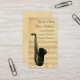 Les détails de carte sont entièrement personnalisables sur l'avant et s'inversent. Employez la personnaliser il bouton pour changer des polices des textes, tailles, couleurs et pour ajuster les éléments de conception sur le costume. Carte de visite idéal pour ceux dans l'industrie musicale, le musicien ou le n'importe qui avec un intérêt pour les saxophones, les bleus et la musique de jazz. La conception apparaît sur plusieurs autres cadeaux dans le magasin.