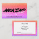 Un arrière - plan de parties scintillant orange passant du rose au pourpre fait un arrière - plan design et moderne pour un Carte de visite simple, beau et professionnel pour une personne de l'industrie de la beauté ou de la mode. L'arrière a la même bordure de parties scintillant, encadrée en saumon foncé, avec beaucoup d'espace pour vous de customiser avec des informations commerciales.