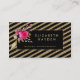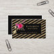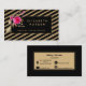 parties scintillant en or noir rayures photographe, wedding planner Boho, cartes de visite floraux Vintages, Cartes de visite Floral Event Planner, Fleurs roses, même Cartes de visite Styliste avec icônes de contact sur le dos.