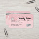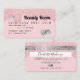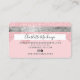 Un élégant carte de visite de style de carte de crédit peintre de coiffure et maquillage moderne avec une typographie de police de script moderne sur une parties scintillant chic faux rose éclatent gouttes et glam doux pastels blush rose tendance arrière - plan. tout le texte est personnalisable, ajoutez vos médias sociaux. Avec fausse bande argentée. Ajoutez votre logo, votre monogramme et votre code QR.