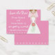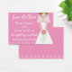 Les amis et la famille se souviendront de votre date de mariage lorsque vous envoyez cette carte super mignonne Save the Date qui contient une mariée souriante sur un arrière - plan rose. Prêt à customiser avec votre date et vos noms mariages.