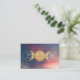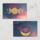 carte de visite de coucher de soleil Golden Triple Moon, parfait pour ceux qui veulent ajouter de l'énergie déesse ou lune à leur profil professionnel. Une triple lune dorée avec des rayons d'énergie et de petites étoiles est dressée contre un ciel ensoleillé.