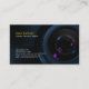 Dans ce carte de visite de réparation et de service de caméra, une fermeture d'un objectif Carl Zeiss forme l'image principale sur un arrière - plan sombre. Customisez-le avec votre nom et vos coordonnées.