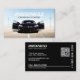 Black Car Rental Service Black Carte de visite offre une vue pittoresque d'une voiture qui correspond à la typographie blanche stylisée du nom de l'entreprise tandis qu'à l'arrière, l'arrière - plan reflète la couleur noire de la voiture avec tous les détails de l'entreprise plus un code QR pour suivre la tendance marketing de nos jours.
