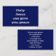 Diffusez le message de foi et d'espérance avec cette carte d'appel qui dit : Seul Jésus peut vous donner la paix. Le dos a une écriture sur la paix du Christ de la Bible du Roi Jacques et le livre de Deuxième Pierre chapitre un et verset deux. Un excellent moyen de briser la glace et d'ouvrir une occasion de parler aux gens de leur destin éternel.