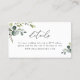 Conçue pour coordonner avec notre collection Boho Greenery mariage, cette carte de détails personnalisable taille carte de visite, présente des feuilles de verdure aquarelle avec texte calligraphique, associée à un serif élégant en noir et une option pour ajouter du code QR sur le dos. Éléments correspondants disponibles.