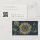 Cette carte marine et dorée au thème tournesol est un moyen charmant de se connecter avec vos invités. Conçu dans une taille carte de visite compacte, il dispose d'un code QR personnalisable et de poignées de médias sociaux afin que les clients puissent partager des photos et des souvenirs de votre grand jour. L'avant présente un motif de tournesol gravé, tandis que l'arrière comprend un texte élégant et des options de mise en page modernes pour votre hashtag, site Web ou note de remerciement.