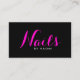 Une police de calligraphie glamour épelle "Nails" en rose vif sur ce modèle de carte de visite moderne. Ajoutez votre nom ou nom d'entreprise pour un logo personnalisé. Conçu pour les techniciens d'ongles et les salons d'ongles. © 1201AM CREATIVE