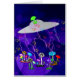 Les poussées étrangères vertes de tête hors du vaisseau spatial et d'un champ des champignons augmentés par puissance dans beaucoup de couleurs avec les coeurs rougeoyants se développe sous lui.