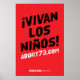 C'est un design en espagnol qui est destiné à un public mondial. Grâce à notre familiarité mondiale avec les expressions "Viva la Revolución" et "Vive la France", la signification de "Vivan los Niños", avec tout son ardeur révolutionnaire, n'est pas difficile à déchiffrer : Vive les enfants ! Mais même si le message se perd dans la traduction, l'URL d'Abort73, qui est le composant le plus important de tous nos designs, reste fermement intacte.