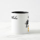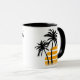La tasse comporte un graphique de rad d'un coucher du soleil et des palmiers et indique "vivent Aloha" dans une police élégante !