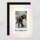 Créez votre propre carte de vacances Live Laugh Love | Couple Guilloché avec ces modèles faciles à personnaliser. Un design moderne minimaliste avec une typographie audacieuse et votre image au centre. Le fond est composé de vagues guillochées pastel arc-en-ciel et d'un cadre blanc simple pour faire ressortir votre image ! Les mots "Vivez, Riez, Aimez" apparaissent sous votre photo préférée et vos noms et l'année en lettrage serif traditionnel en dessous. L'invitation se retourne sur un motif de vagues noir et charbon - reflétant la structure sous-jacente du fond. Essayez-le avec votre photo préférée de l'année et voyez à quel point cela a l'air génial avec vos noms en dessous !