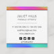 Un carte de visite carré branché avec un design holographique saisissant en arc-en-ciel. Vos coordonnées, y compris le téléphone, le courriel, le site Web et la poignée des médias sociaux sont à l'envers. Vous pouvez customiser plus loin pour supprimer les icônes des médias sociaux que vous n'utilisez pas, et repositionner les icônes si nécessaire.