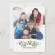 Vœux chaleureux | Carte de vœux photo de vacances - Verte. Elke Clarke© D'autres couleurs disponibles dans notre boutique sur www.zazzle.com/epclarke. Flocons de neige et volutes et effet de neige artificielle rendent ce modèle de carte polyvalent et facile à utiliser pour ajouter votre photo et le nom de votre famille. Design simple et mignon pour créer votre propre carte de vœux unique et personnalisée pour les fêtes à envoyer à votre famille et à vos amis.