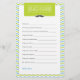 Cette carte de vœux pour bébé est une activité amusante et un souvenir pour toute fête prénatale. Dans une palette de couleurs verte et bleue, elle présente une illustration de moustache. L'ajout parfait à une fête prénatale sur le thème 'Petit Homme' !