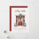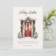 Carte de vacances à plat avec un script moderne "Vœux de vacances" et une image de porte d'entrée décorée de verdure de Noël et un espace supplémentaire au dos pour un message personnel.