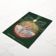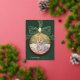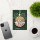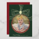 Cette élégante carte de Noël présente un design classique de bauble et un arc festif en feuille d'or dressé contre un arrière - plan vert profond aux accents rouges ainsi qu'un modèle photo rond à l'intérieur de la baule. Idéal pour Noël, photos de famille et voeux de vacances.