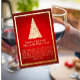 Notre Golden Christmas Tree Foil Card montre un X'mas doré (imprimé en papier d'or réel) dressé contre un arrière - plan rouge avec des flocons de neige et entouré d'une bordure en feuille d'or. Tous les textes sont entièrement personnalisables.