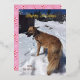 Une carte de Noël moderne à paillettes dorées avec votre photo préférée verticale de votre animal de compagnie. Le dos est rose avec un motif de canne à sucre et de flocon de neige. Personnalisez-la avec votre vœu de Noël et le nom de votre famille en utilisant le modèle fourni.