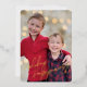 Cette carte présente votre photo de portrait préférée avec un texte en surimpression à l'aide de feuilles métalliques indiquant « Bonheur de fêtes » dans un style élégant et festif. Le verso dispose d'un espace pour une autre photo, un court message de Noël et les noms de votre famille. Une carte de Noël élégante, simple et charmante pour que famille et amis puissent en profiter.