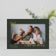 Envoyez vos vœux de fin d'année chaleureux avec cette carte de Noël sophistiquée mettant en vedette votre photo préférée comme pièce maîtresse. Sur un fond riche vert foncé, la phrase « Joyeux Noël » est élégamment affichée en feuille d'or scintillante, ajoutant une touche luxueuse et festive. Parfait pour mettre en valeur un souvenir précieux tout en répandant la joie des fêtes.