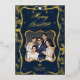 Célébrez la magie de la saison avec cette carte de Joyeux Noël personnalisée sophistiquée avec un élégant bleu marine et un design doré chatoyant. La carte présente votre photo magnifiquement encadrée dans une bordure dorée étincelante, avec des ornements festifs, des étoiles scintillantes et des détails de verdure saisonniers. Le message personnalisé "Joyeux Noël" brille dans la calligraphie dorée luxueuse, faisant de cette carte la façon parfaite de répandre la joie des proches. Ajoutez votre nom de famille et une photo spéciale pour un souvenir unique que vos amis et votre famille apprécieront pour les années à venir. Idéal pour : Vacances Cartes de Noël de famille Gardes personnalisées pour les proches Laissez la joie et le style de votre famille briller avec ce design intemporel et premium de carte de Noël!