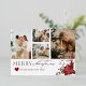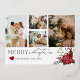 Célébrez la saison avec cette superbe carte de Noël qui comporte un espace pour quatre photos chéries. Le design élégant est orné d'un poinsettia festif dans le coin, ajoutant une touche de vacances intemporelle. Personnalisez-la avec le nom de votre famille et l'année pour créer un message de vœux digne d'être conservé.