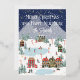 Personnalisez cette carte de Noël avec votre propre texte et vos noms pour la rendre unique. La belle scène de village de Noël vintage est un excellent arrière-plan et la superposition de neige dorée la fait vraiment ressortir et lui donne une sensation riche que vos amis et votre famille vont adorer. Ce serait une excellente carte à offrir à des partenaires commerciaux également.