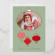 Une simple carte de Noël moderne avec des ornements rouges JOY sur un fond vert mousse de mer. De véritables accents de feuille d'or métallisé ornent les ornements, le texte et la photographie de votre nouveau membre de la famille avec une brillance luxueuse pour partager ces précieux souvenirs.
