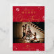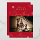 Diffusez la joie festive avec une carte de voeux de Noël photo personnalisée. Cette carte de Bonnes Fêtes comprend l'espace pour une grande photo de famille et votre nom de famille. La véritable feuille d'or complète parfaitement cette carte d'image Joyeux Noël et le riche motif arrière - plan rouge et subtil flocon de neige apportent cet esprit de Noël.