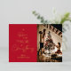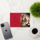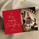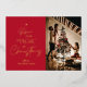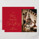 Diffusez la joie festive avec une carte de voeux de Noël personnalisée en photo de famille. Cette carte de vacances calligraphie comprend l'espace pour une grande photo de famille et votre nom de famille. Le design de typographie en feuille de papier vient compléter parfaitement cette carte Joyeux Noël et l'arrière - plan rouge riche apporte cet esprit de Noël.