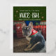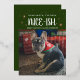 Cher Père Noël, j'ai été une carte de vacances pour animaux de compagnie. Célébrez les fêtes avec une photo de votre bébé à fourrure. Celui-ci est doté d'étoiles en feuille d'or et de points autour du bord supérieur. Photo de Chris Benson