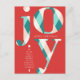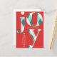 Cette carte de Noël audacieuse et moderne rayonne d'énergie festive avec un arrière - plan rouge frappant et le mot "JOY" dans une grande typographie à motifs. Le texte qui l'accompagne exprime des voeux chaleureux pour les fêtes, ce qui en fait un choix parfait pour partager l'esprit de Noël. Avec un mélange d'éléments contemporains et classiques, cette carte transmet un message de joie, de paix et de joie pour la saison.