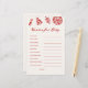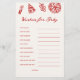 Ajoutez du plaisir et du rire à votre baby shower grâce à ces chansons Italiennes à thème pour les cartes bébé! Conçues avec des accents de pizzeria rouge, verte et rustique, ces cartes présentent une charmante atmosphère italienne, parfaite pour correspondre à votre décor de pizza party. Les clients peuvent deviner si les déclarations sont dépassées ou inférieures au nombre réel, créant une activité animée et interactive. Personnalisez-vous pour votre événement et coordonnez-vous avec la collection complète de baby showers à pizza italiennes pour un look cohésif.