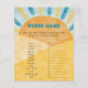Aquarelle unique Sunshine thème Baby shower Baby Guess Game Card dans les couleurs Jaune, Bleu et Orange brûlé.