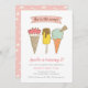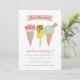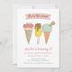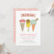 Organisez une fête de glace pour votre petit cet été ! Cette adorable invitation d'anniversaire présente des glaces et des cornets colorés et mignons ainsi qu'un fond de ciel rose.